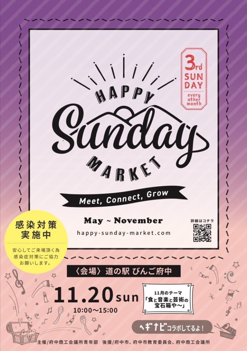 11月20日(日)道の駅びんご府中にて、今年度最後となる「HAPPY SUNDAY MARKET」を開催させていただきます!!