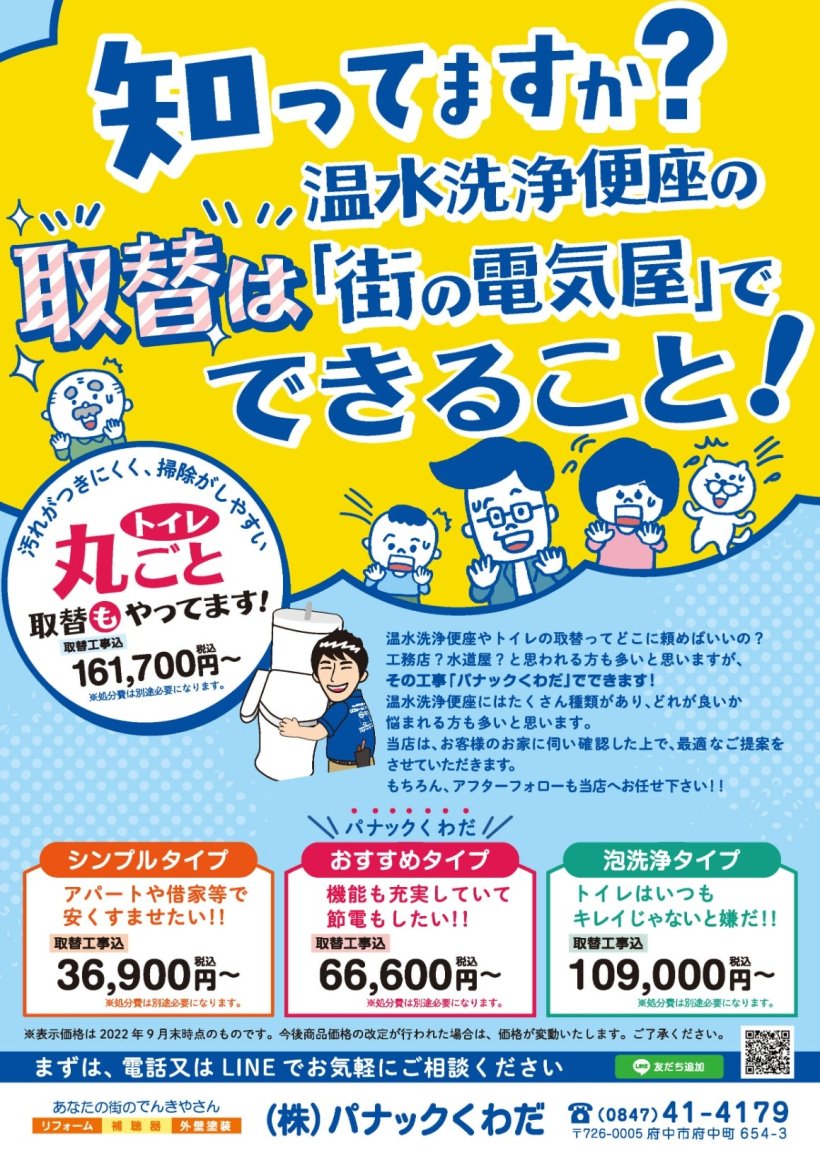 少し寒くなってきたこの時期に是非、温水洗浄便座の取替をご検討ください(*^▽^*)