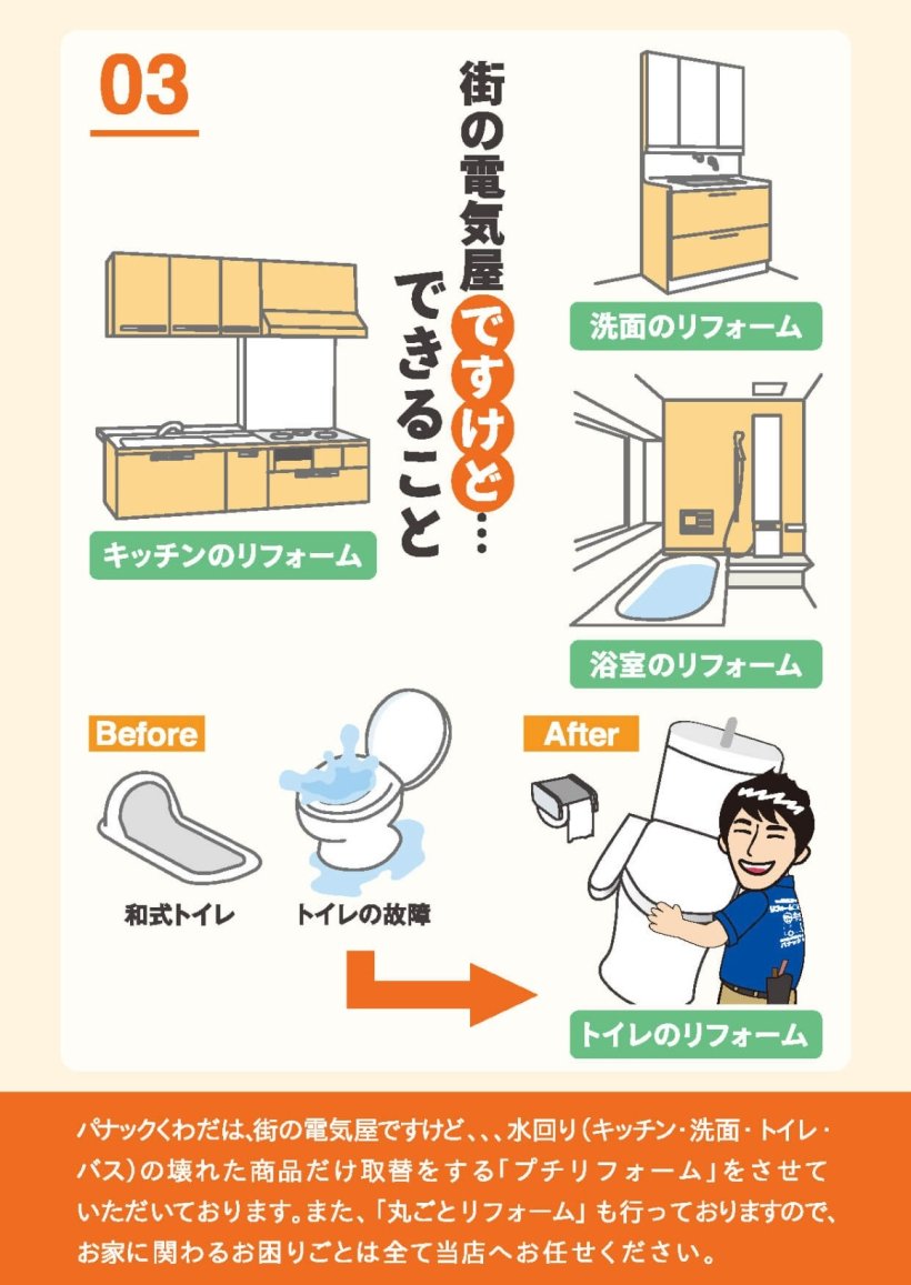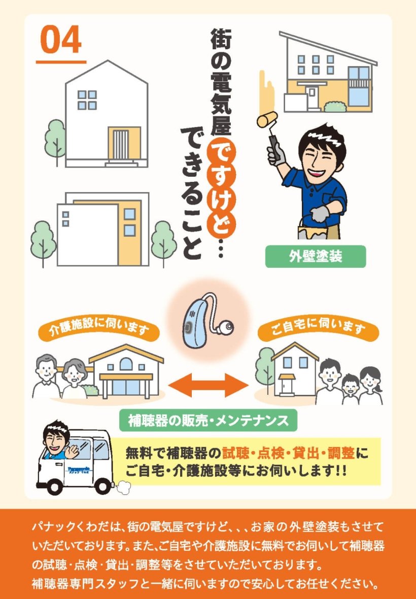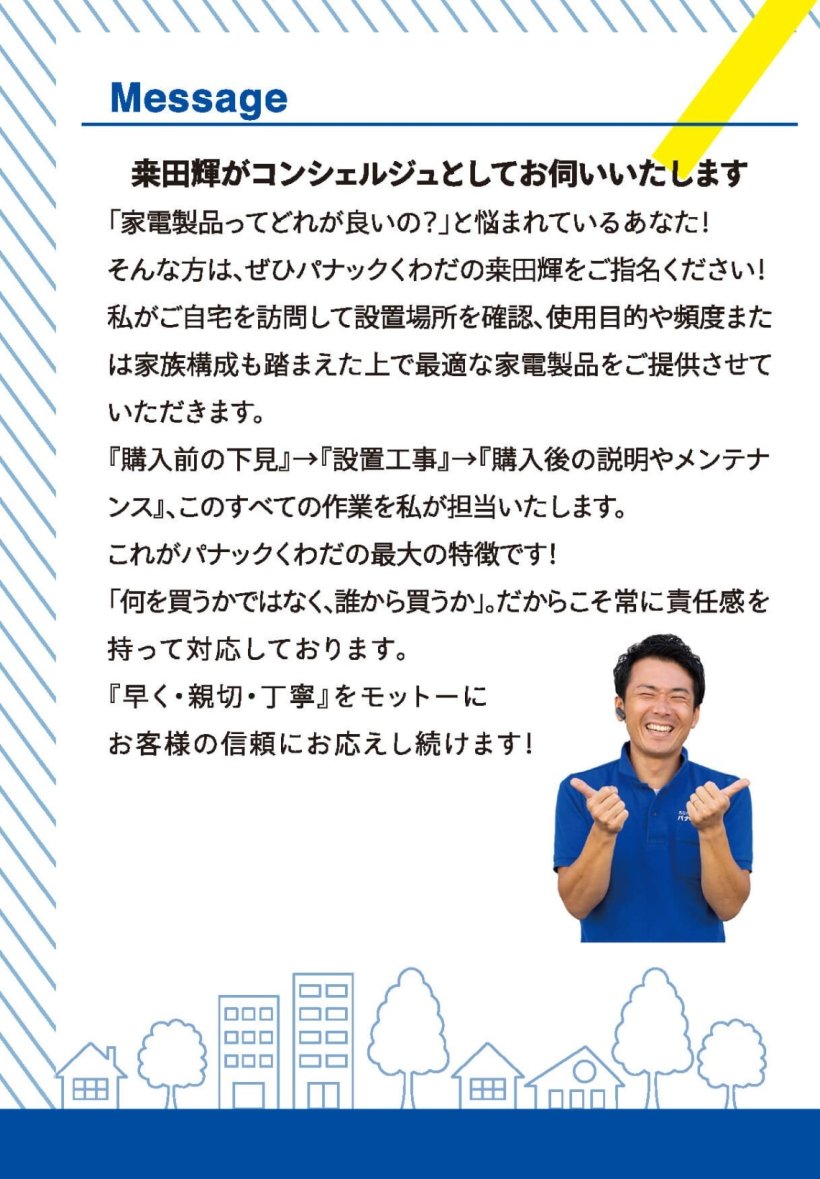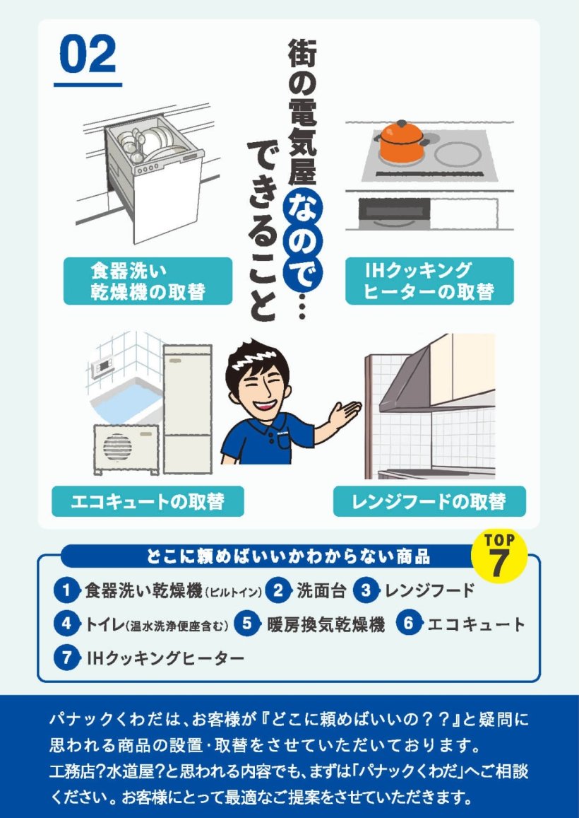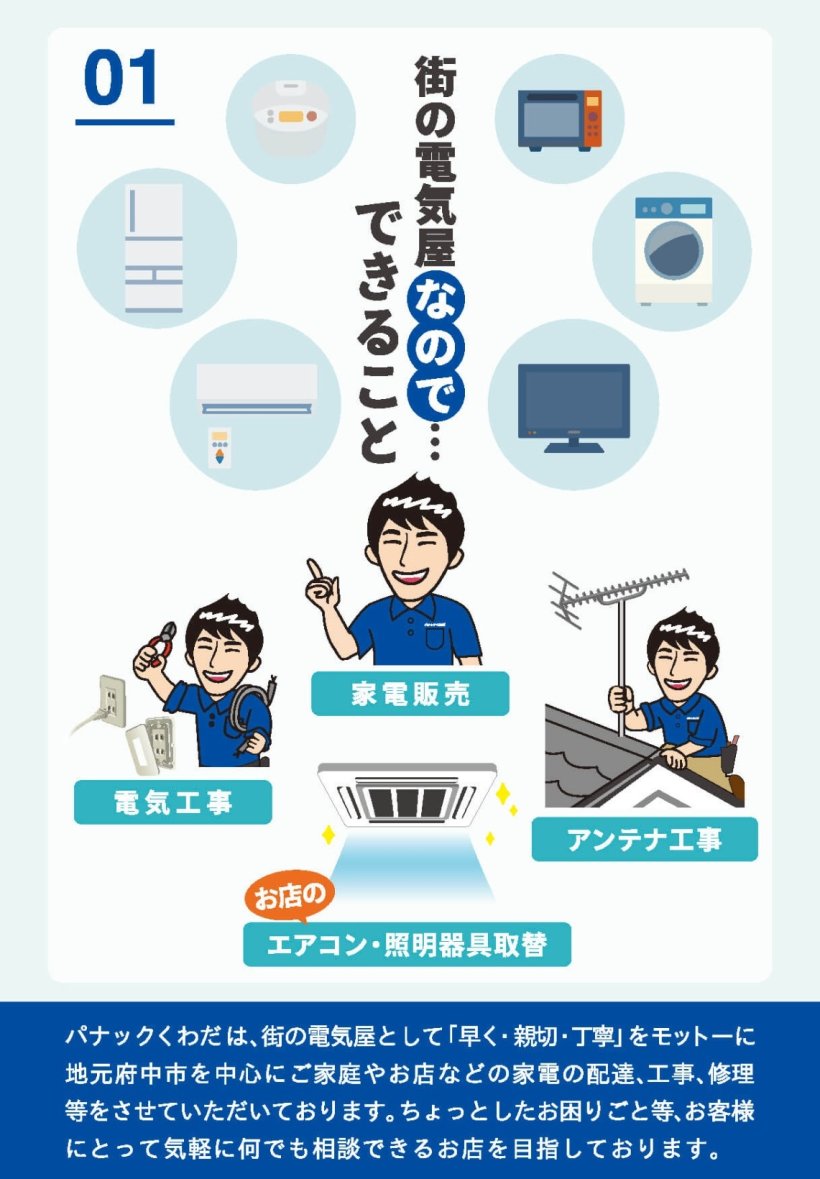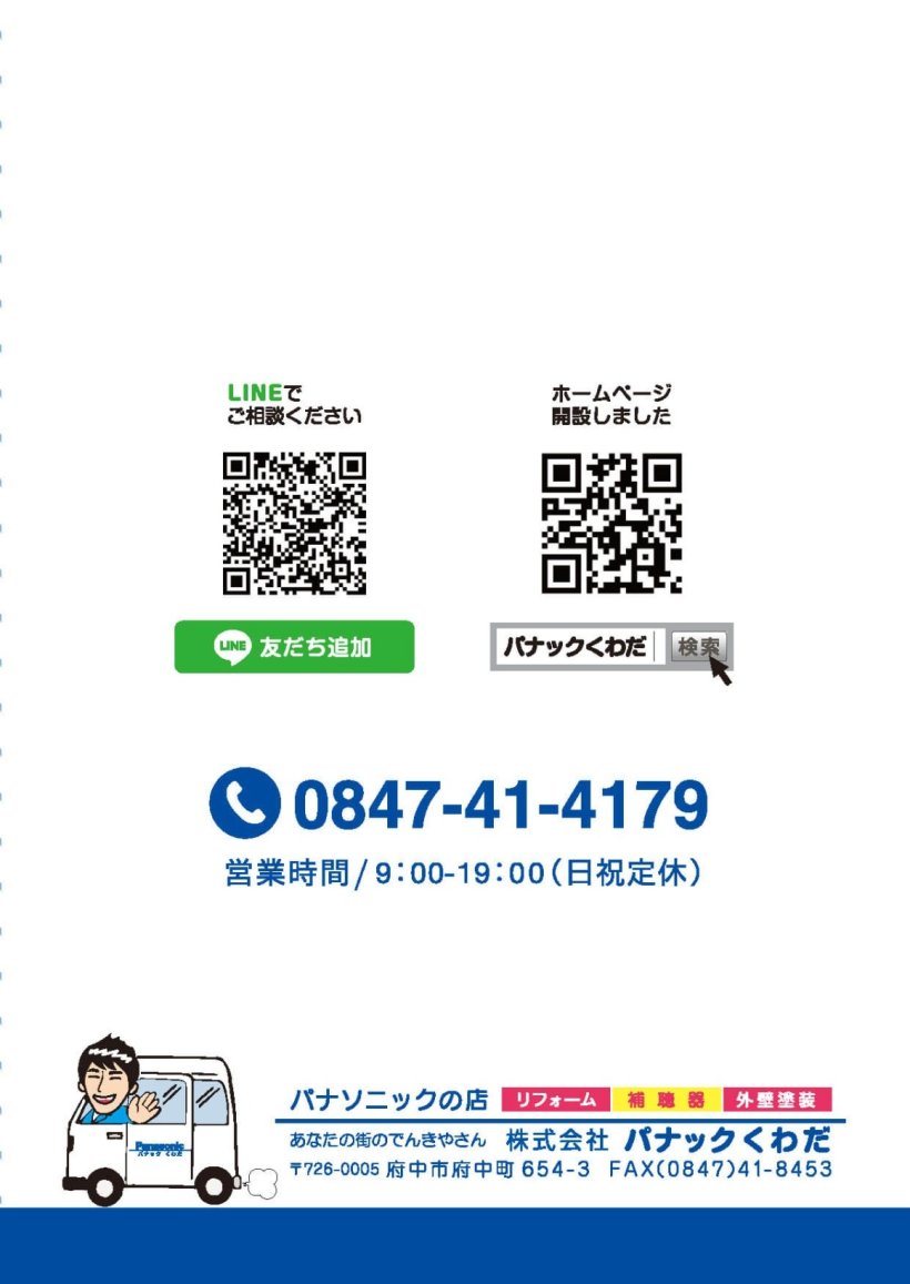 この度、パナックくわだのパンフレットを作成いたしました♪ 街の電気屋である「パナックくわだにできること✨」をまとめております!! また、「仕事に対する想い」や「パナックくわだの歴史」も載せておりますので、是非ともご覧いただければと思います!! 「こんなこともできるんだ!」「なかなか頼むとこがなくて困ってたよ、、、」等、気になることがございましたら、お気軽に当店へご相談ください!! 「早く・親切・丁寧」をモットーにお客様の信頼にお応えし続けます!