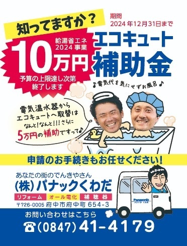 さらに、電気温水器からの取替になるとさらに5万円追加となります✨